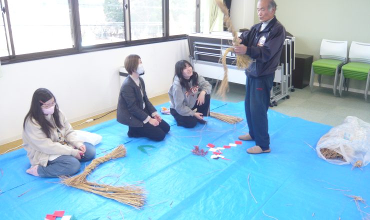 12月15日(月)地元の方を講師としてお招きして、しめ飾りを生徒が自分の手でつくりました。 「なう」という講師の手つきは難しく、右回しに「より」の方...