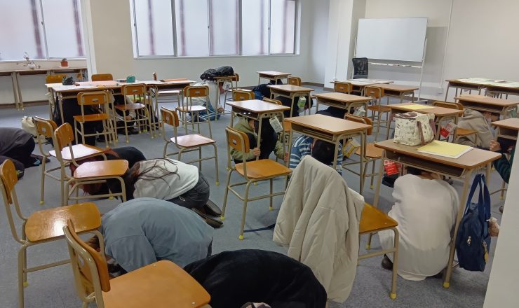 アートデイ準備の真っただ中。今日は何か起こりそうな気がする…! と、全員が2階に集合したところで地震発生(の想定で)避難訓練を行いました。 揺れてい...