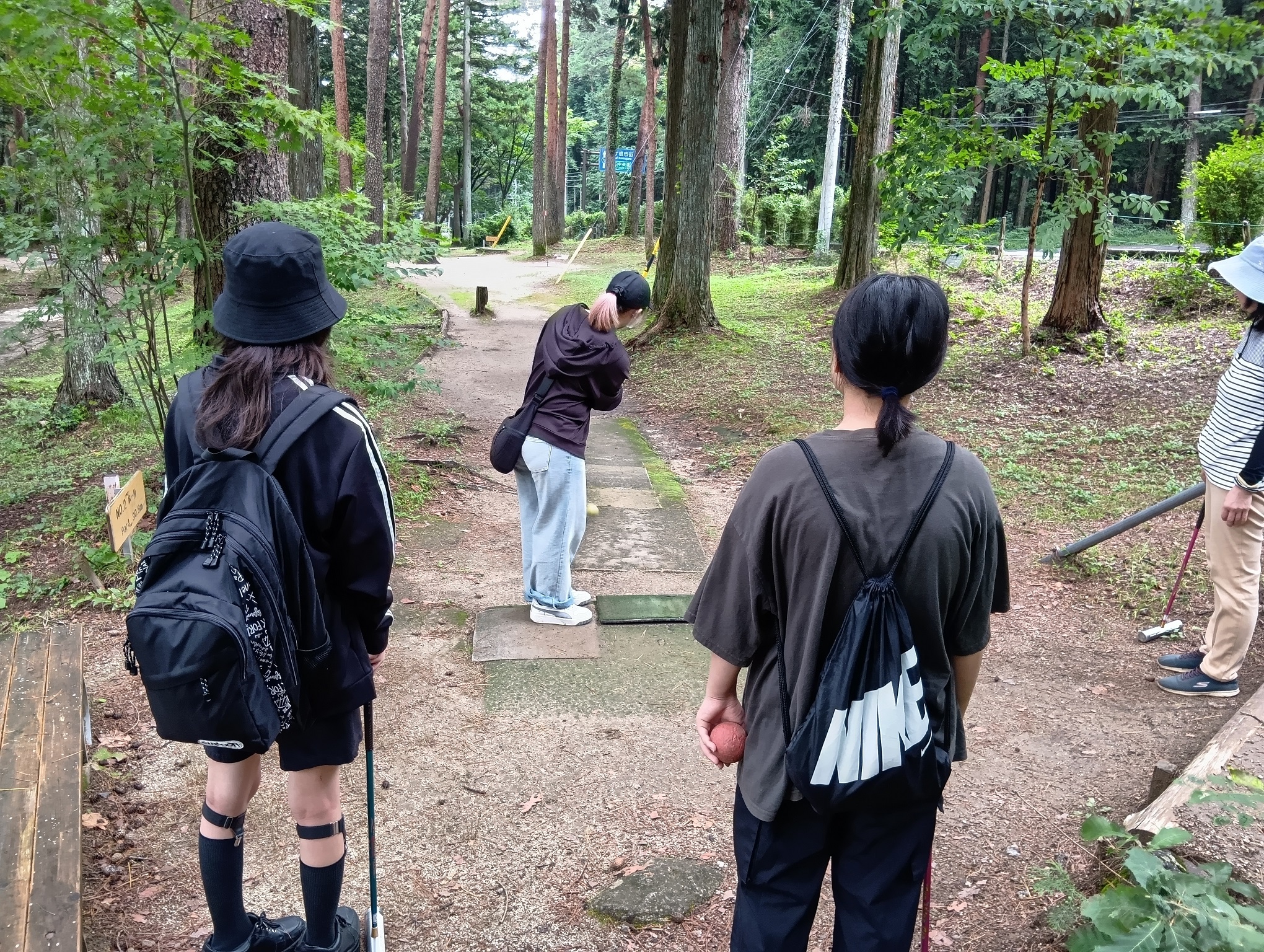 標高およそ800mに位置する駒ヶ根のマレットゴルフ場は木々に囲まれ、涼しい風が吹く快適な陽気。朝方降っていた雨も上がり、予定通りマレットゴルフ大会の開催となりました。