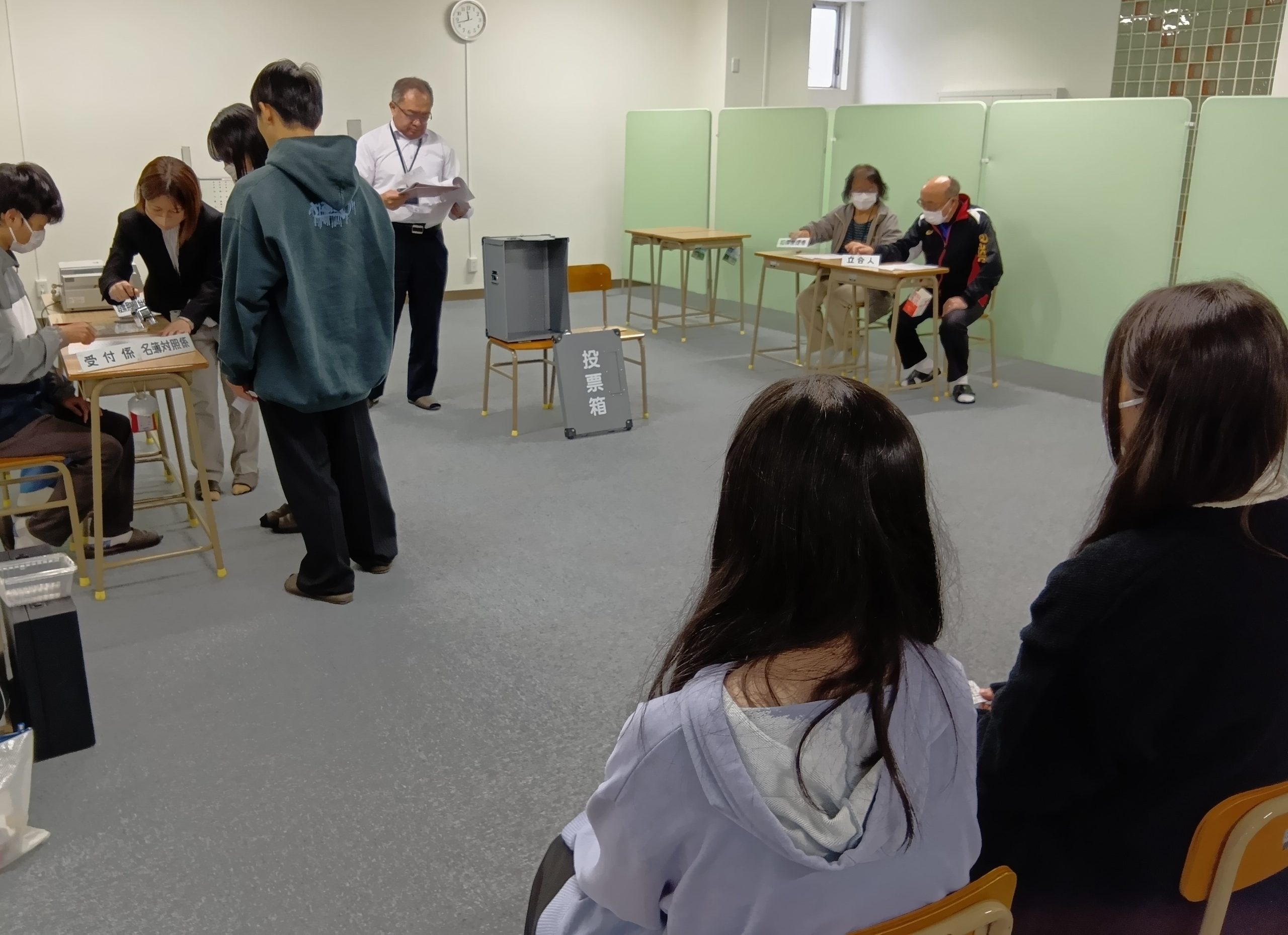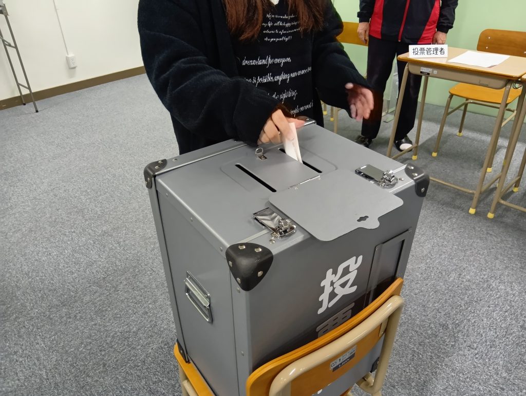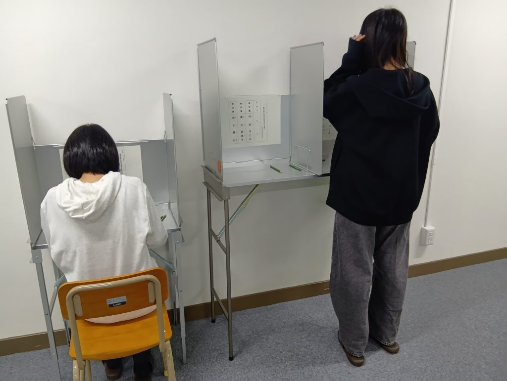 投票箱、記入スペース、投票用紙出力の機械など、かなり実際に近い形で投票に臨みました。