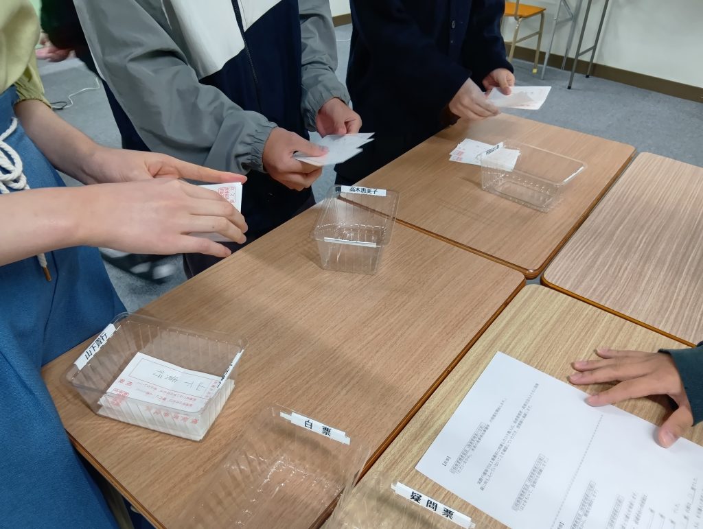 投票後には開票作業も体験。