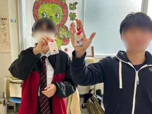 ・・・後日、「献血ルームへ行ってきましたー!」という生徒たち。