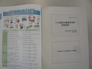 1.辰野本校租税に関する講座 2025.11.13 税理士の先生、伊那税務署の担当の方にお越しいただき、租税に関する講座を行いました。 消費税や所得税の仕組みや、税金がどのような事に使われているのか、 エピソードを交えながら講義していただきました。 また、伊那税務署から「税務署の仕事」について紹介していただきました。 生徒たちにとって、日頃の生活の中の税と共に、自身の進路も考える機会となりました。 投稿者: 辰野本校1.辰野本校生け花教室を開催第9回つくば祭を開催しました!