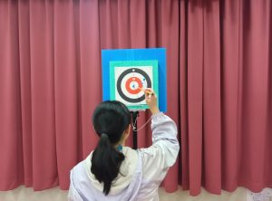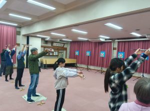 その後、スポーツウェルネス吹矢の型と呼吸法を教えていただき、実践していきます。