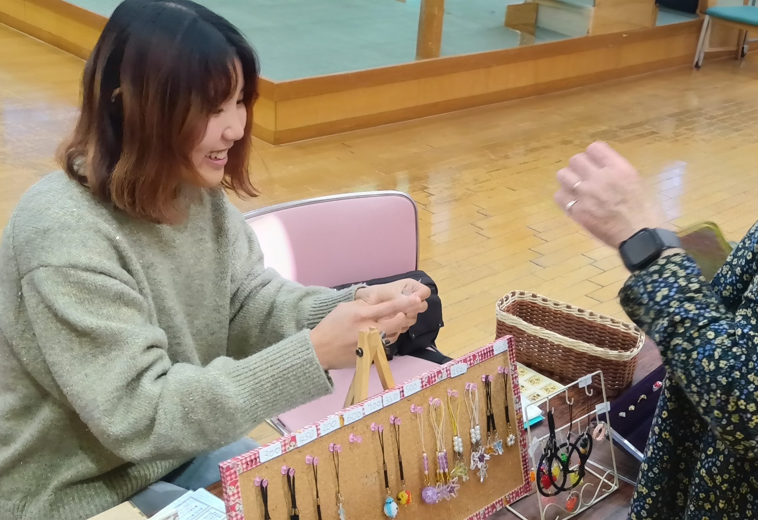 多くの方がご来場する中、生徒は、作家の方がつくった素敵なアクセサリーの販売のお手伝いをしたり、