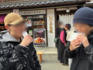 コロッケや抹茶、おやきなどそれぞれの好きな物を食べ歩いていました♪
