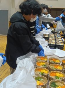 お弁当配布では、今回から少しやり方が変わったものの生徒たちは臨機応変に対応していました。