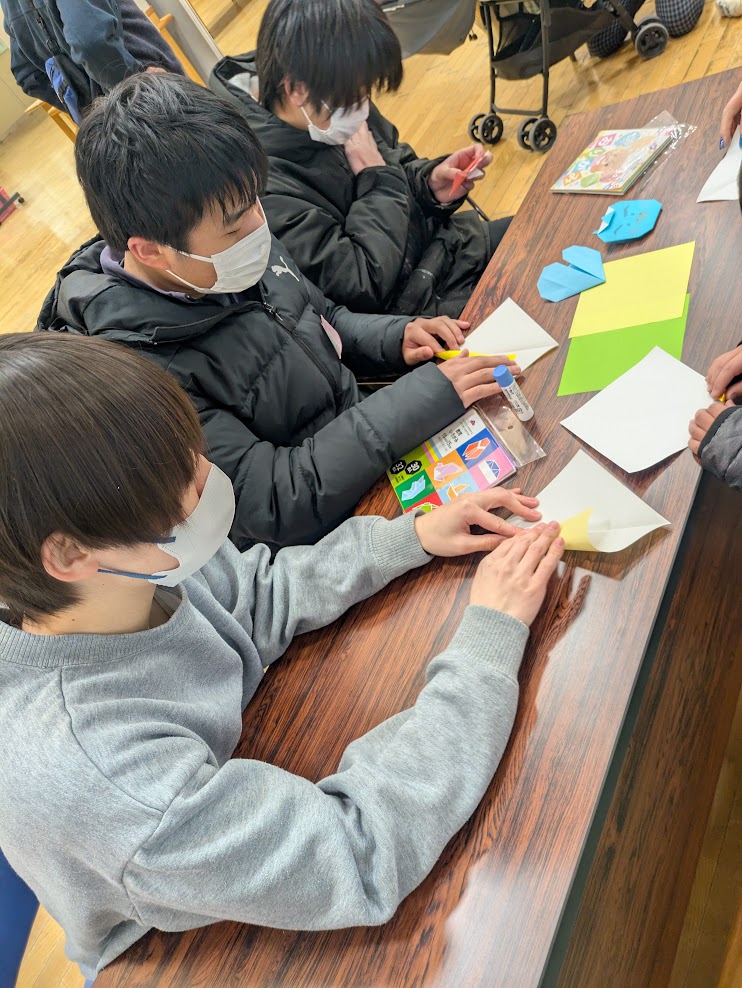 先月に引き続き、お弁当配布前に折り紙教室を開きました。