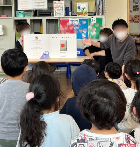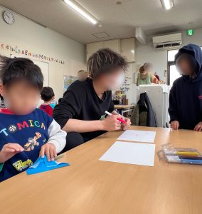 まずは名前を書いて自己紹介。園児の皆さんのリクエストを聞きながら、一緒にお絵描きを楽しみました♪
