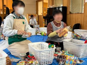 大学生と高校生がペアとなって、仕分けと梱包作業を進めました。